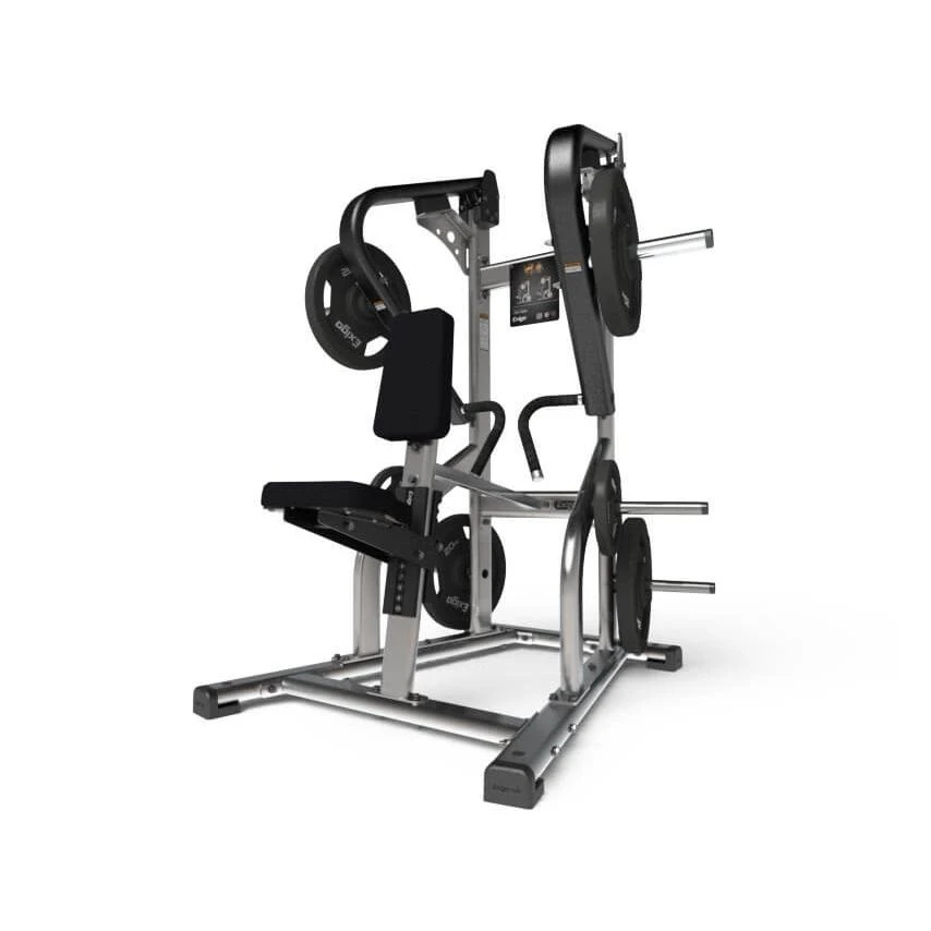 Exigo have angled the adjustable seat to ensure more comfort and of course, the correct seating position. They have then added the angled wide grip handles to give you the choice of a number of grips to make it comfortable for working out. Being a plate loaded machine means you can put exactly the right weight on on the machine, as well as giving you the opportunity to move both limbs at the same time, one in isolation and both with different weights on. Pretty impressive!