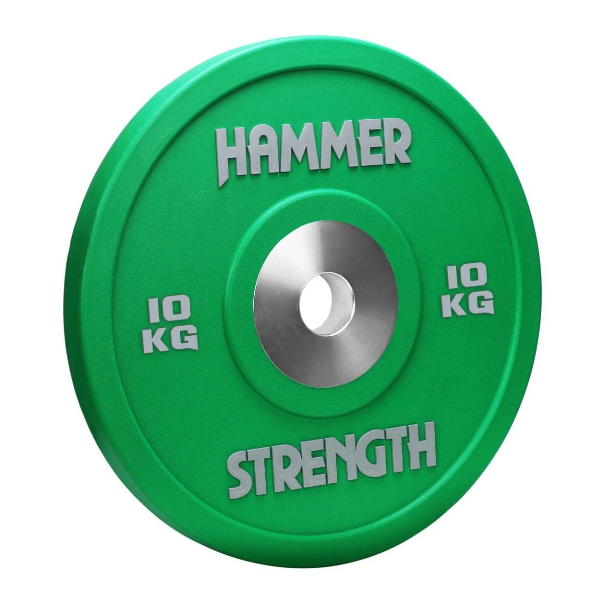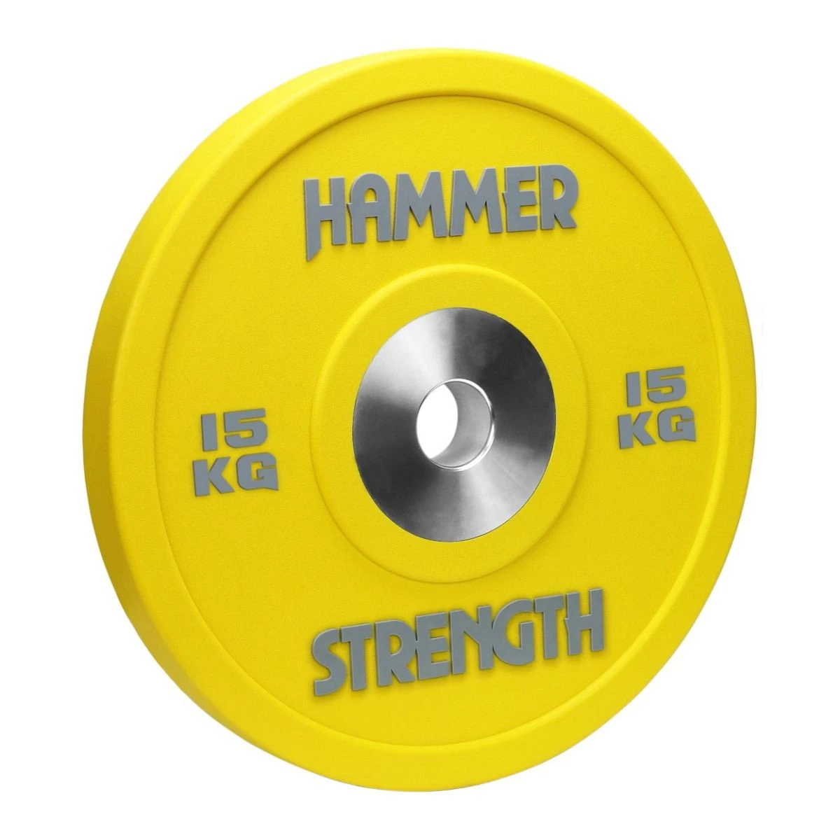 When you want to use your Olympic bar and work on deadlifts or squats, the Hammer Strength Urethane Coloured Bumper Plates make sorting your weights out an easytask. Colour coded you can quickly find the discs you want. With the standard 2″ diameter (50mm) which supports all Olympic Bars, you can use for a variety of weight workouts.