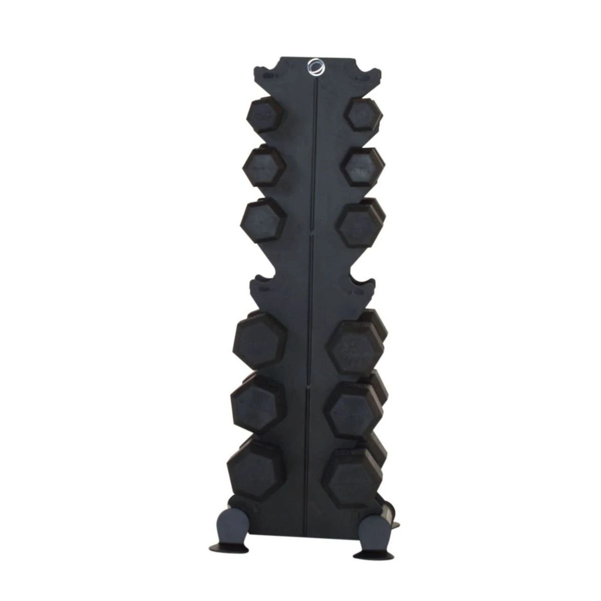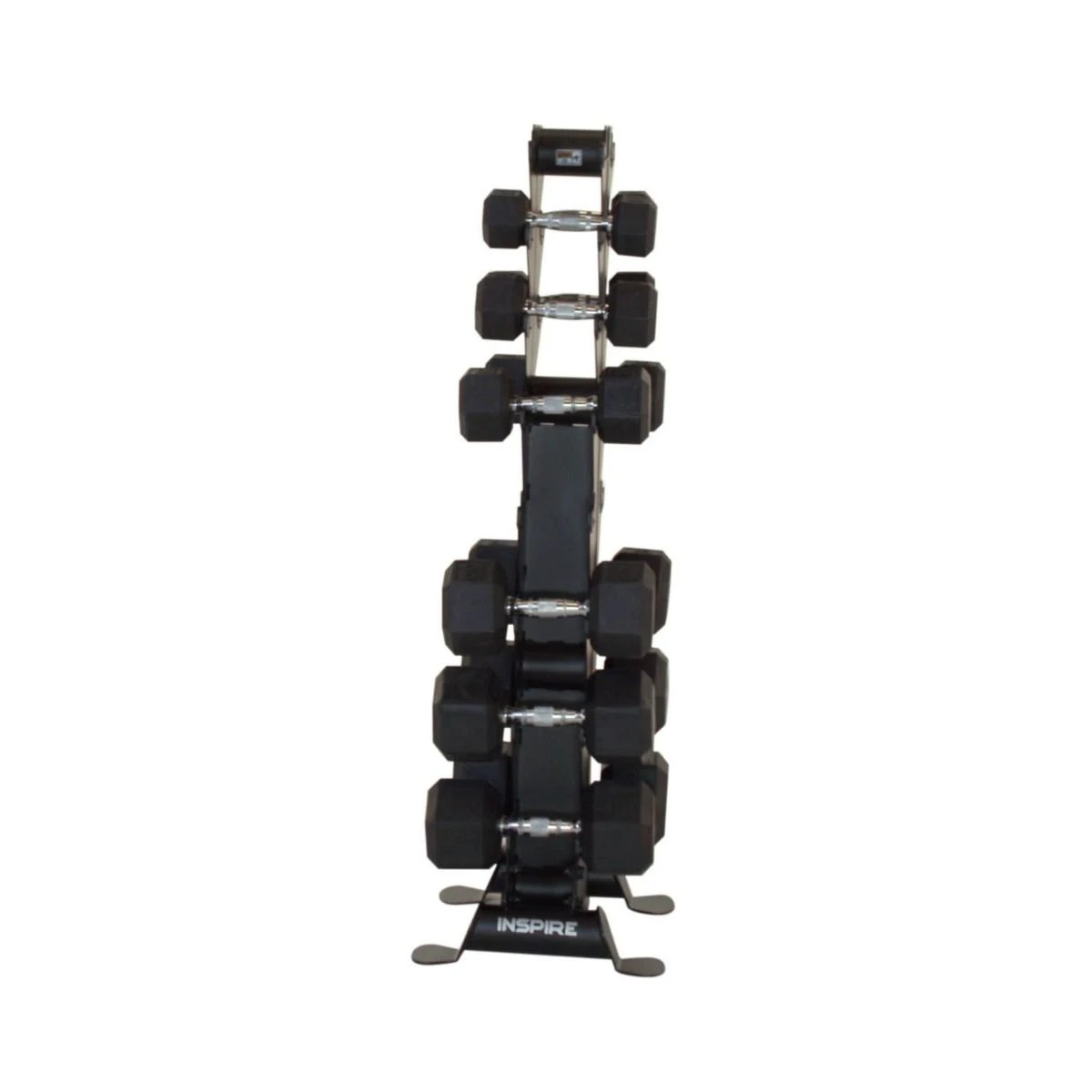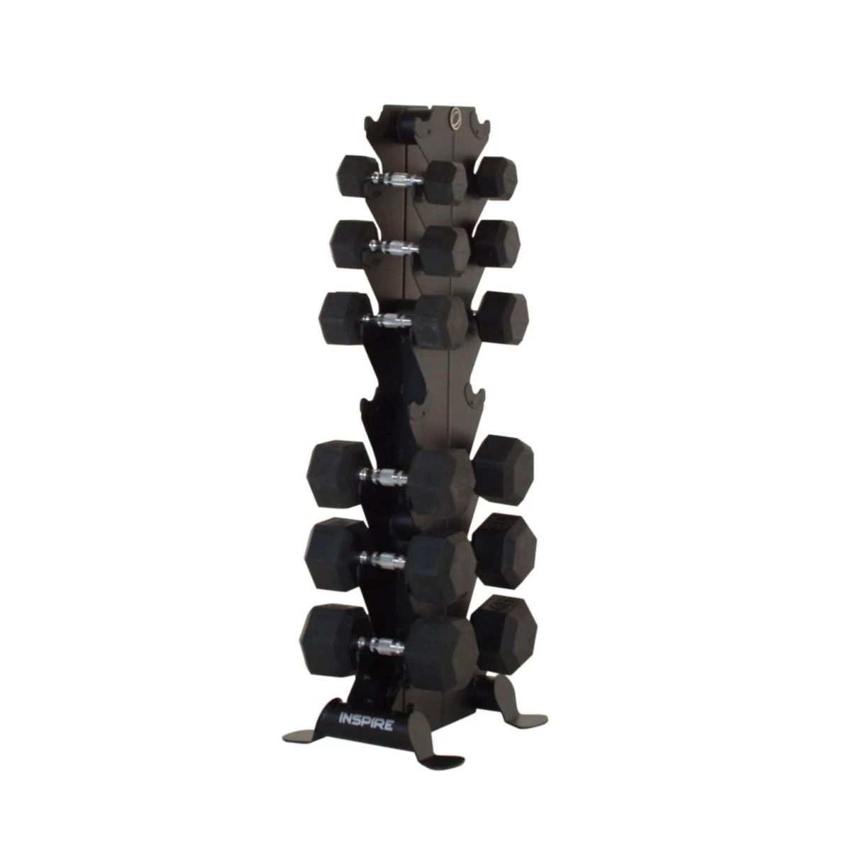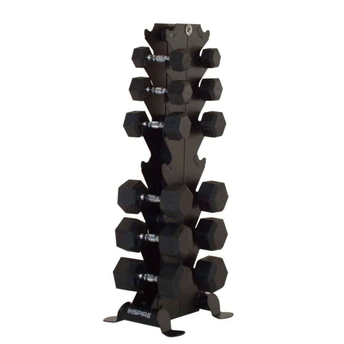 Perfect for when you are tight on space in your gym, the Inspire Fitness Vertical Dumbbell Rack proivides a solid and stable home for up to 8 pairs of dumbbells. The Inspire dumbbell rack is manufactured using a heavy-duty 2’x4′ oval 11 gauge tubular steel, which means it’s designed to last.