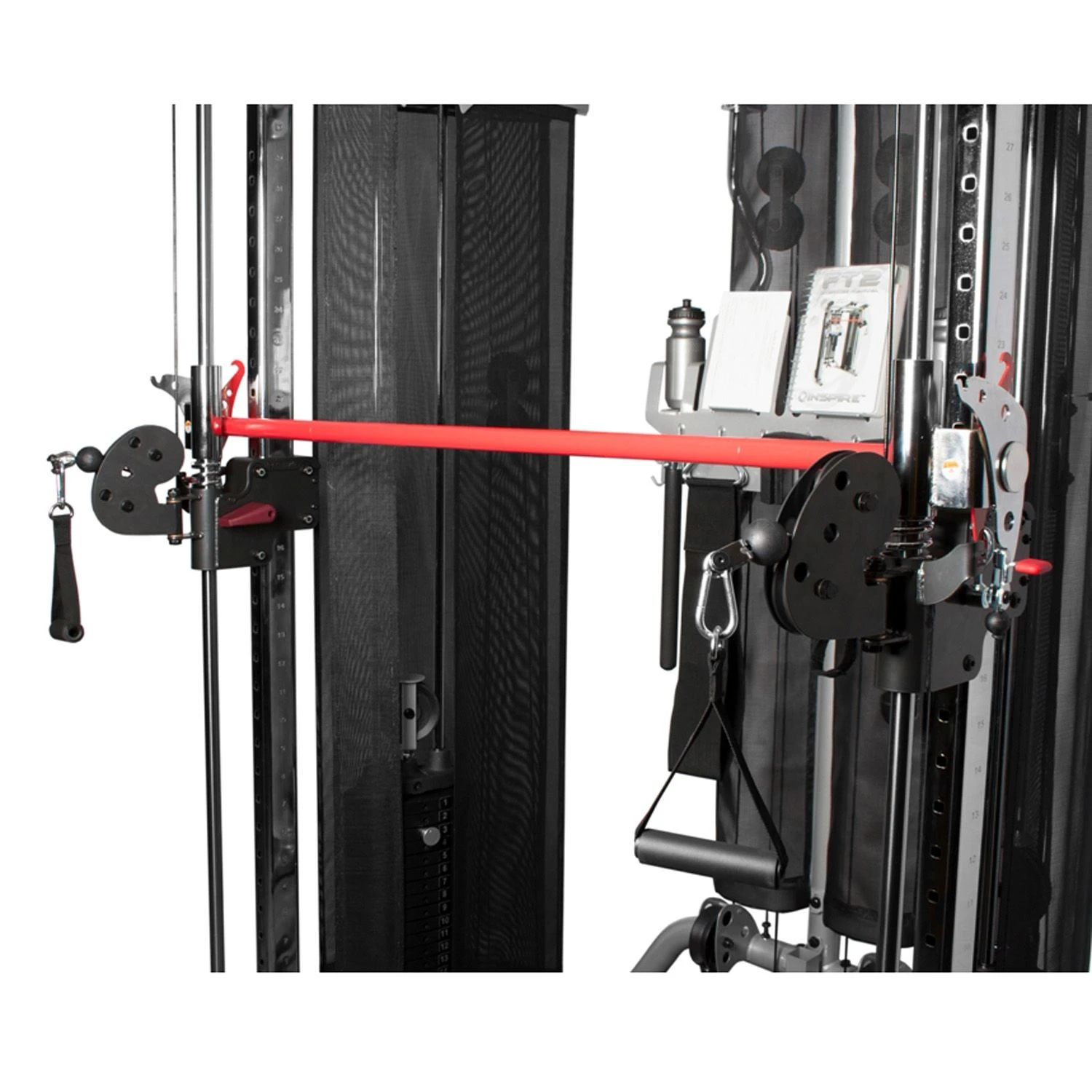 With an 8 point pulley system (2 wide adjustable pulleys with 32 height positions, 2 high pulleys and 4 low points) you can perform an endless number of functional training exercises. Click here for the Inspire FT2 Trainer Package)