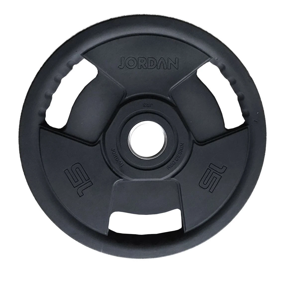 These new style rubber Olympic weight plates from Jordan are the discs of choice for home gyms and fitness facilities that want excellent quality and stylish design. With a 50mm centre hole, the weight discs are designed for Olympic bars and have 3 contoured hand grips so you can easily add/remove them from the bar and avoid nipping your fingers.