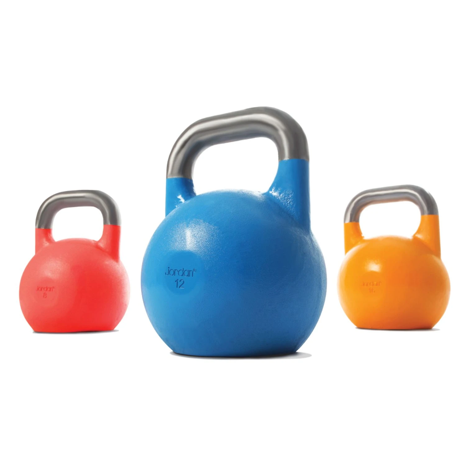 These competition kettlebells from Jordan fitness are one of the best around. Great for developing strength and power these steel competition kettlebells come with a smooth finish and hollow core. With a super smooth handle and uniform size and shape across the range these kettlebells offer all you need. Colour coded for easy weight identification, they are available in sizes 8-40kg in 4kg increments. These kettlebells are made to meet competition standards for handle diameter (35mm) and bell dimensions.