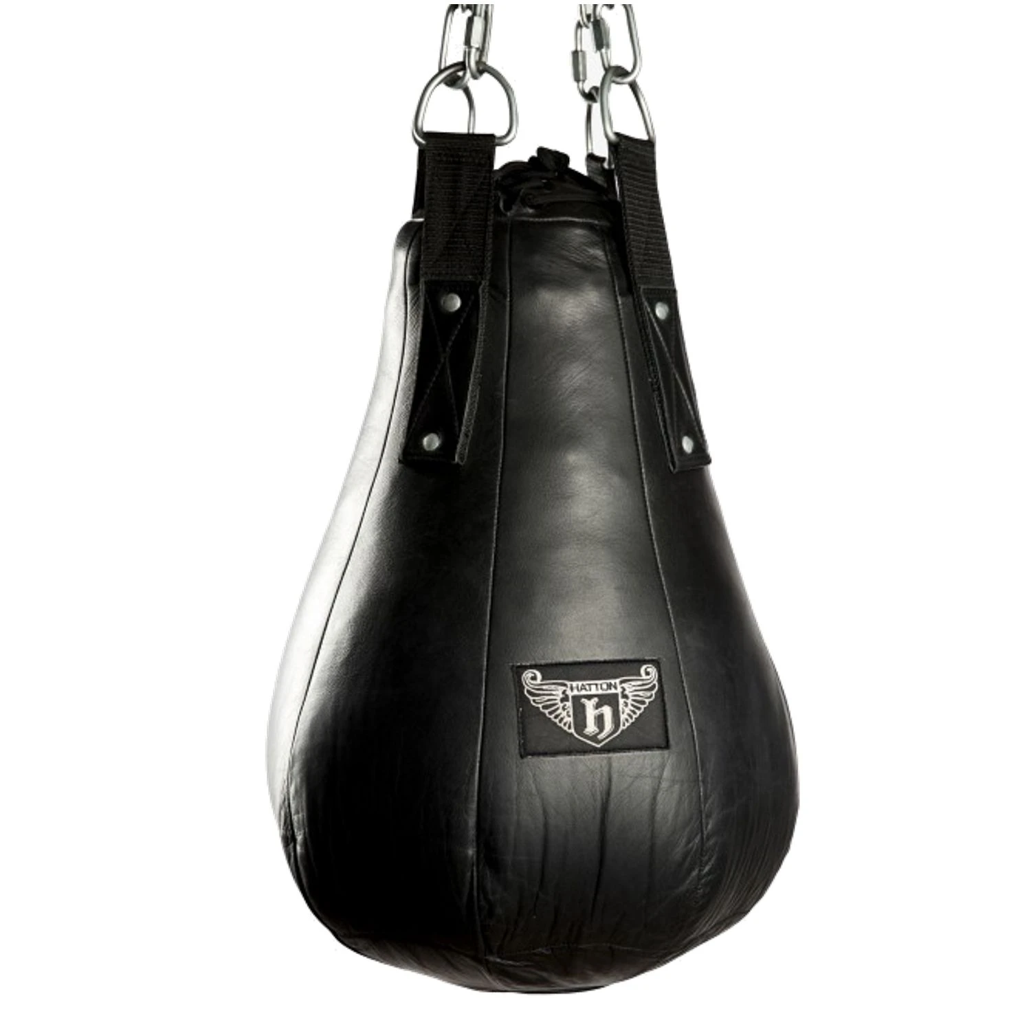 As part of the high quality Hatton boxing range, this leather maize bag fits in perfectly with the other bags and gloves. Finished in black, with a 4 hook ceiling attachment the quality leather bag is filled with Hatton’s own filling that ensures the bag keeps it’s shape in use. It’s often mistakenly hit like a punch bag, but this is strictly a balance, timing and footwork bag.