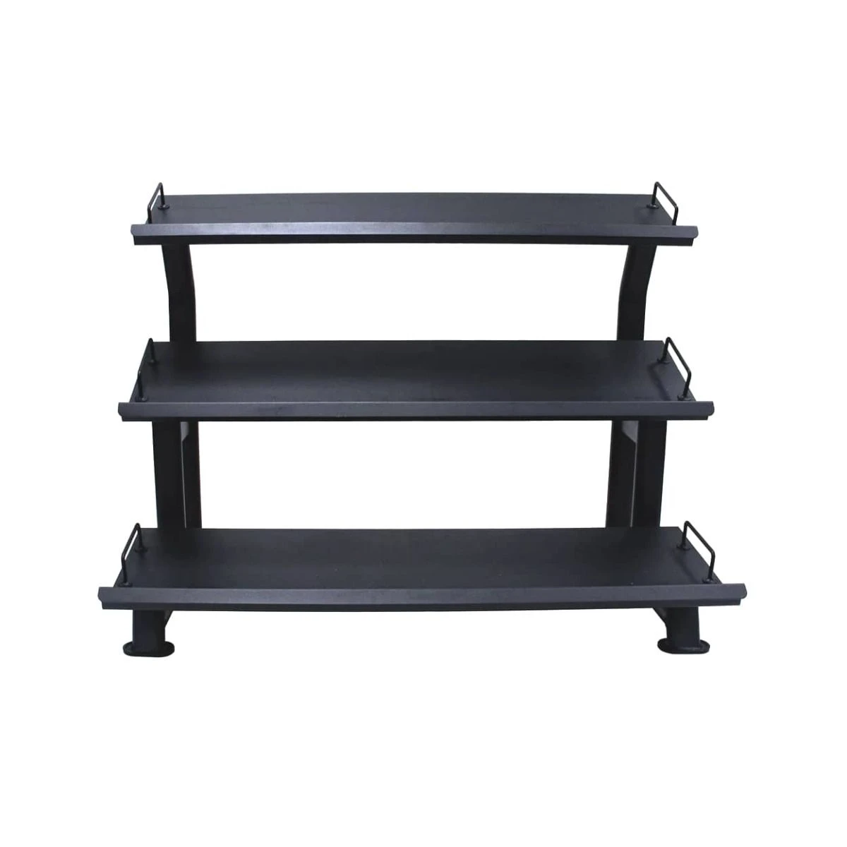With a steel frame, high quality welding joints and the flat shelves, these Jordan hex dumbbell racks offer a good alternative to the normal racks with saddles – which never quite fit the hex dumbbell shape. The finish is a matte black too – so looks good in any setting – home or commercial. Finally, they come with rubber feet to help protect your floors.