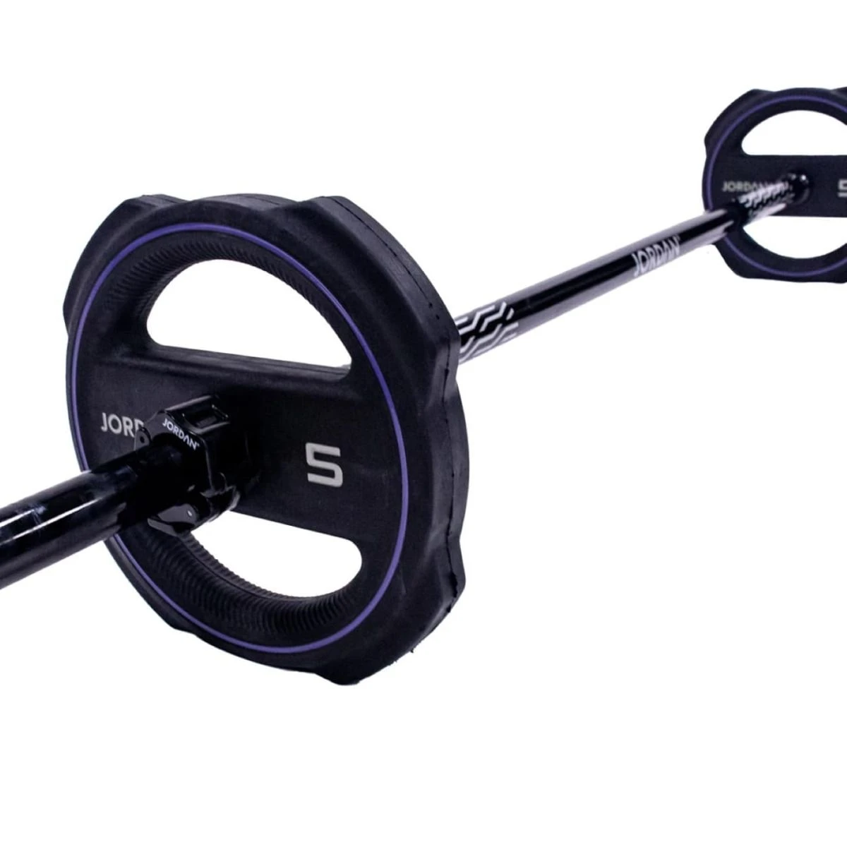 A flexible and easy to use barbell is a god send for most gyms – whether home or commecial. To give it’s full title, the Jordan Fitness Ignite Pump X Rubber Studio Barbell Set comes with six discs, the bar and clamp lock collars to keep the weights on.