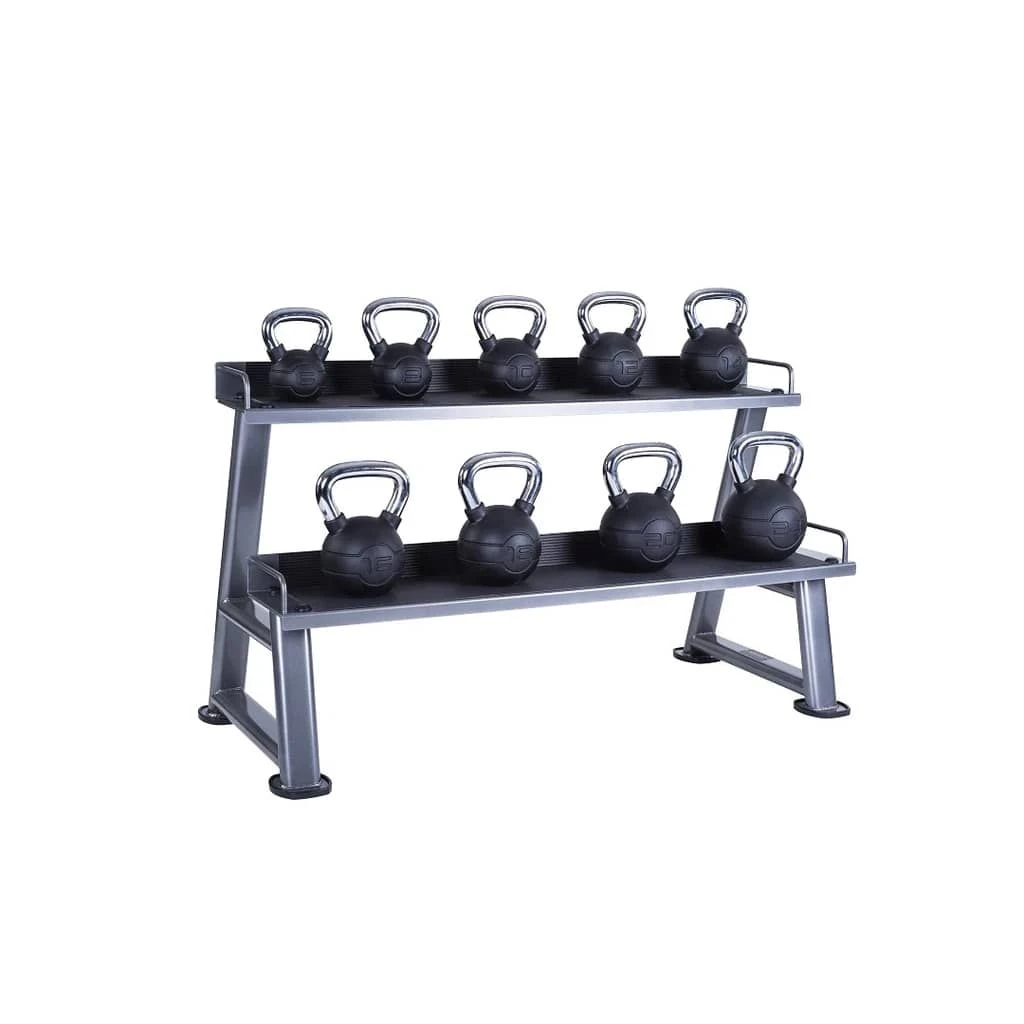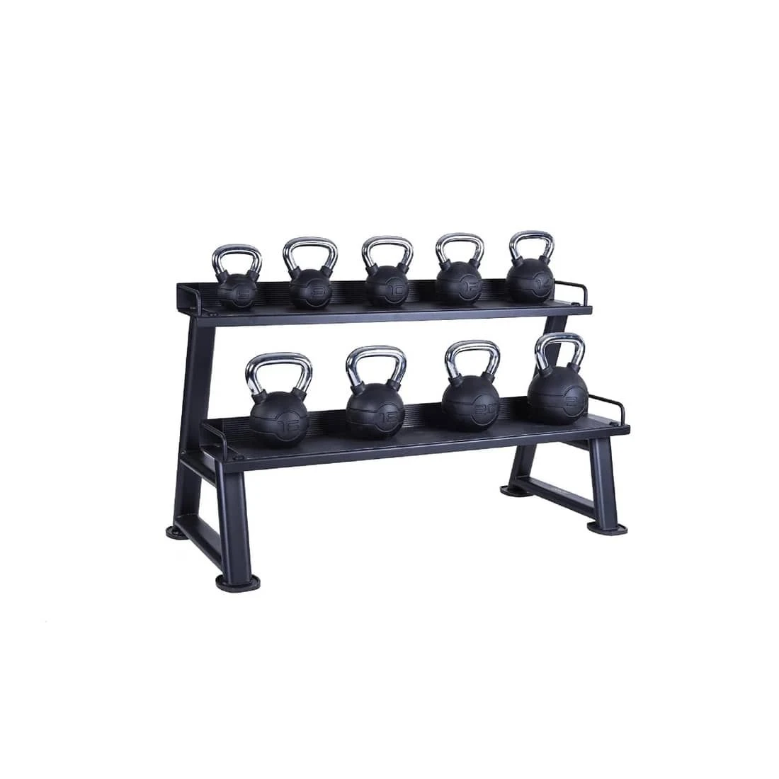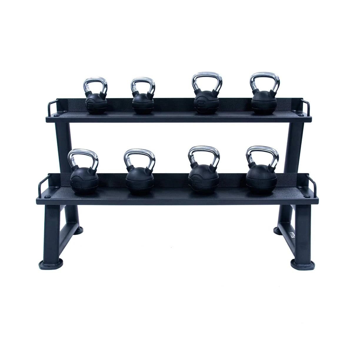 This Jordan 2 Tier Kettlebell Rack provides a safe, convenient and attractive way of storing your kettlebells. This 2 tier rack is able to hold kettlebells of all sizes and will look professional in any gym. It is designed to provide users with an easier height for lifting and storing your kettlebells.