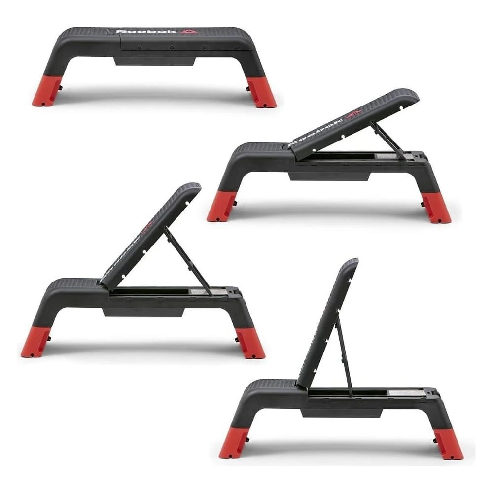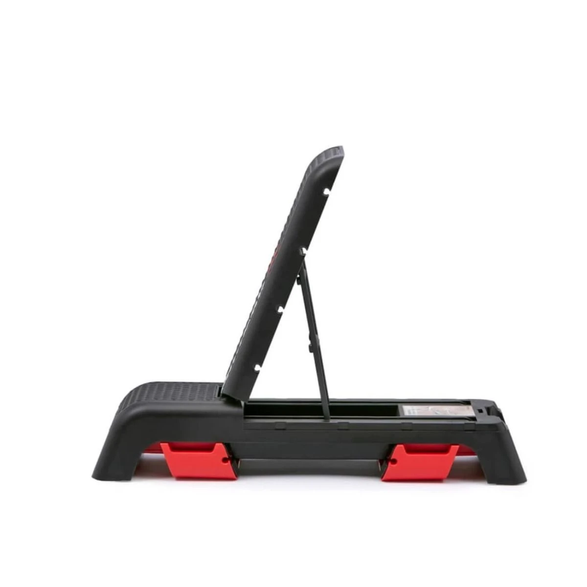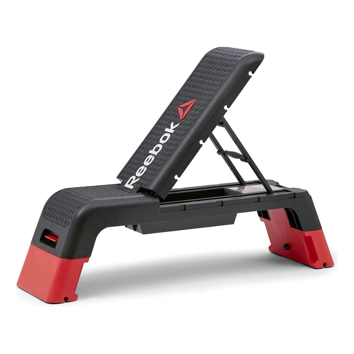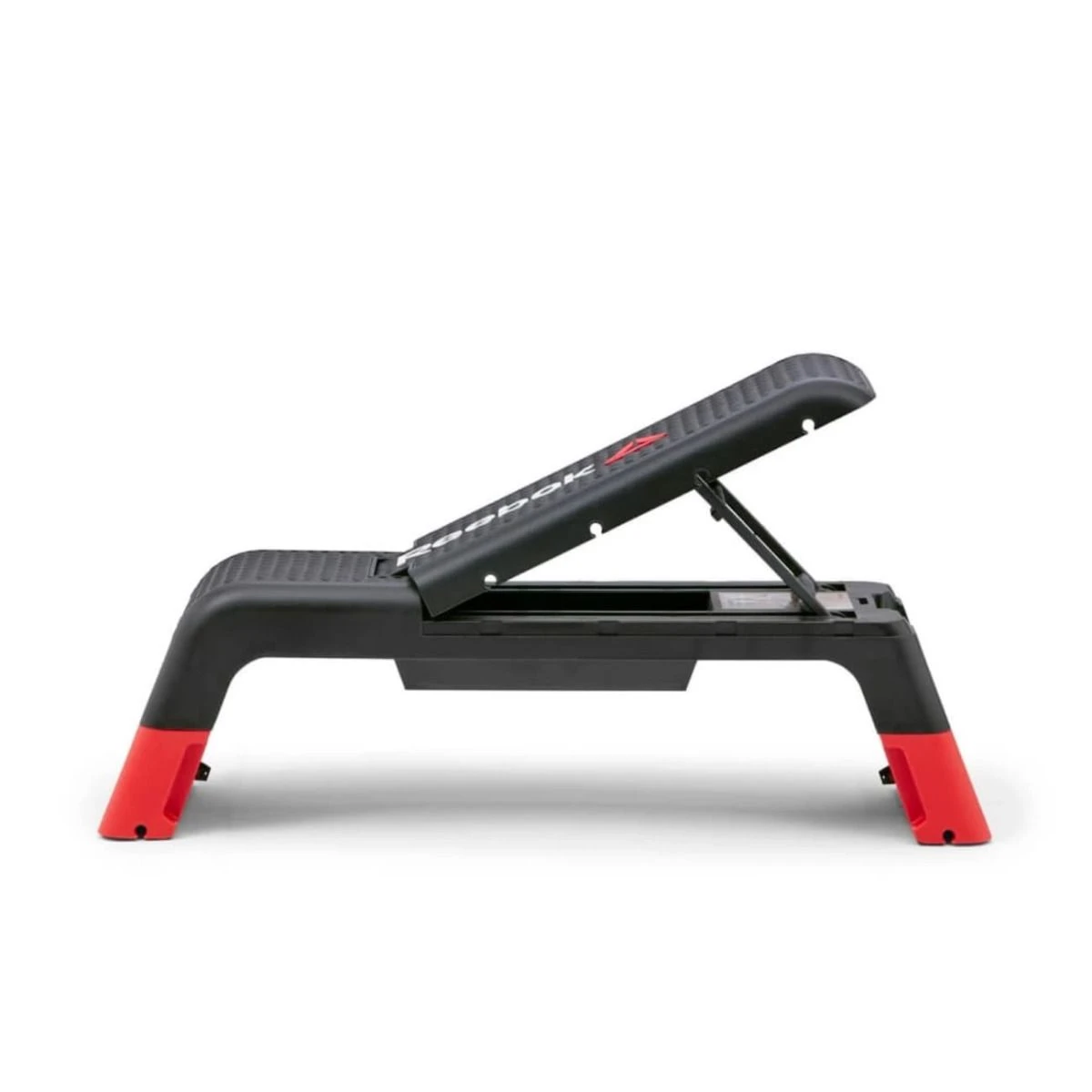 Solid and stable step that includes a low bench in effect. The Reebok Studio Deck gives you the chance to do toning, strength and bodyweight exercises with a lightweight and easy to store ‘step deck’. With some great features like adjustable height feet, grippy surface and the adjustable back rest, it’s a multi-functional deck that’s perfect for homes and gyms.