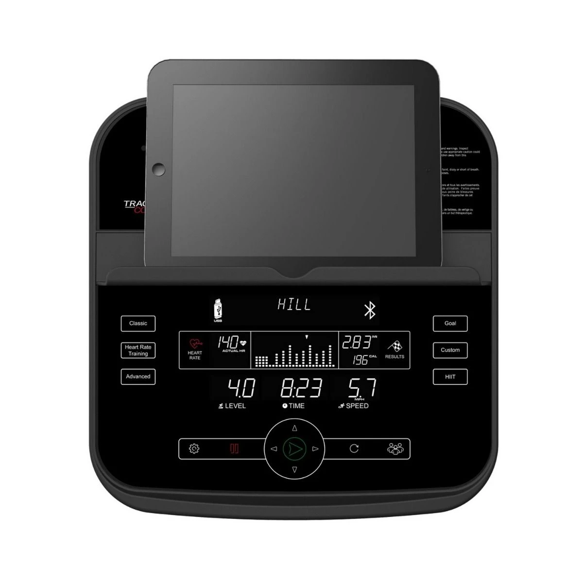 An LCD touchscreen at the front of the treadmill that provides the technology for your workouts. With the repositioned iPad/iPhone holder and Bluetooth compatibility, you also have the addition of HIIT workouts. Their technology allows for four user-defined, customised workout programs giving you more choice and more versatility for a running program.