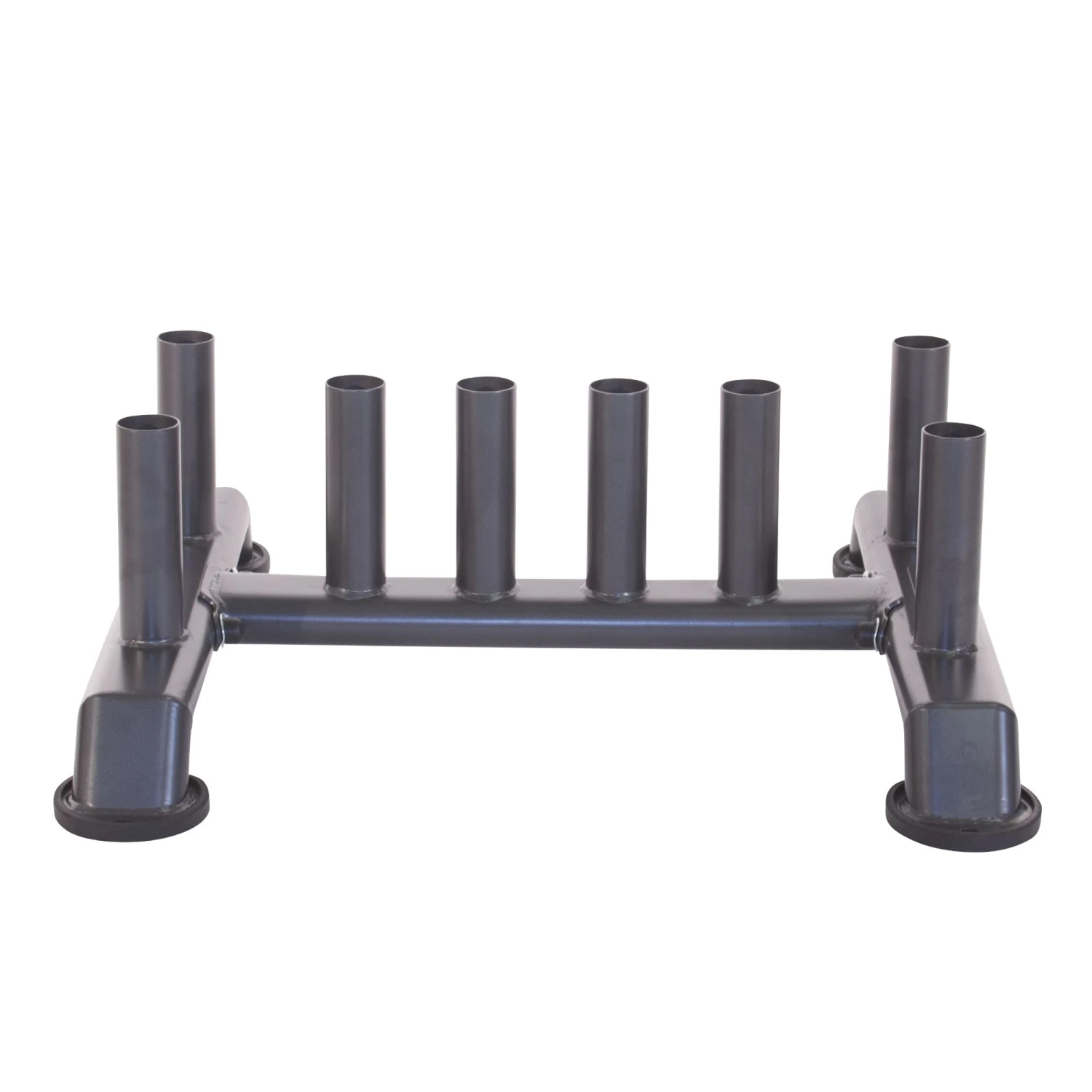 This nifty accessory is designed to take up to 8 Olympic bars at once. It’s a great way to store your bars with minimum fuss and floor space. Using vertical storage, the Olympic bar rack has been designed to offer a very stable and durable system to keep your bars off the floor.