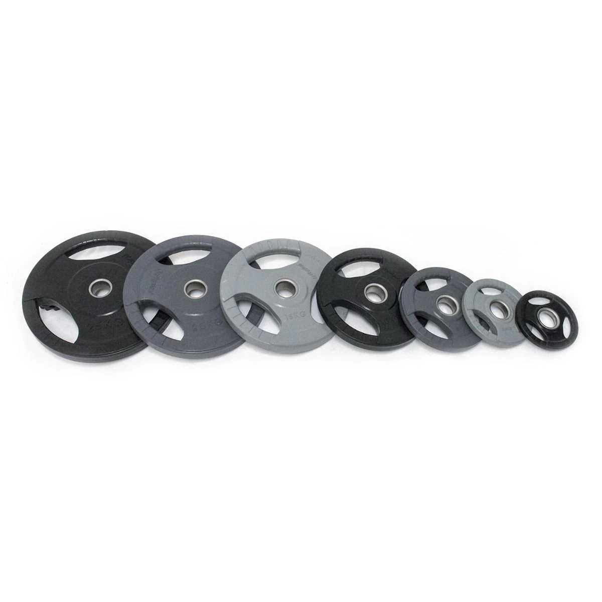 The rubber coating offers a protective coating that will not only help to prevent floor damage, but will also keep the noise to a minimum. They are high quality manufactured weight discs that have had a 2″ steel centre hole added to reduce friction and any damage to (or from) a bar. With ergonomically placed hand grips, this also makes them easy to pick up and add to the bar simpler. The range is 1.25kg, 2.5kg, 5kg, 10kg, 15kg, 20kg & 25kg.