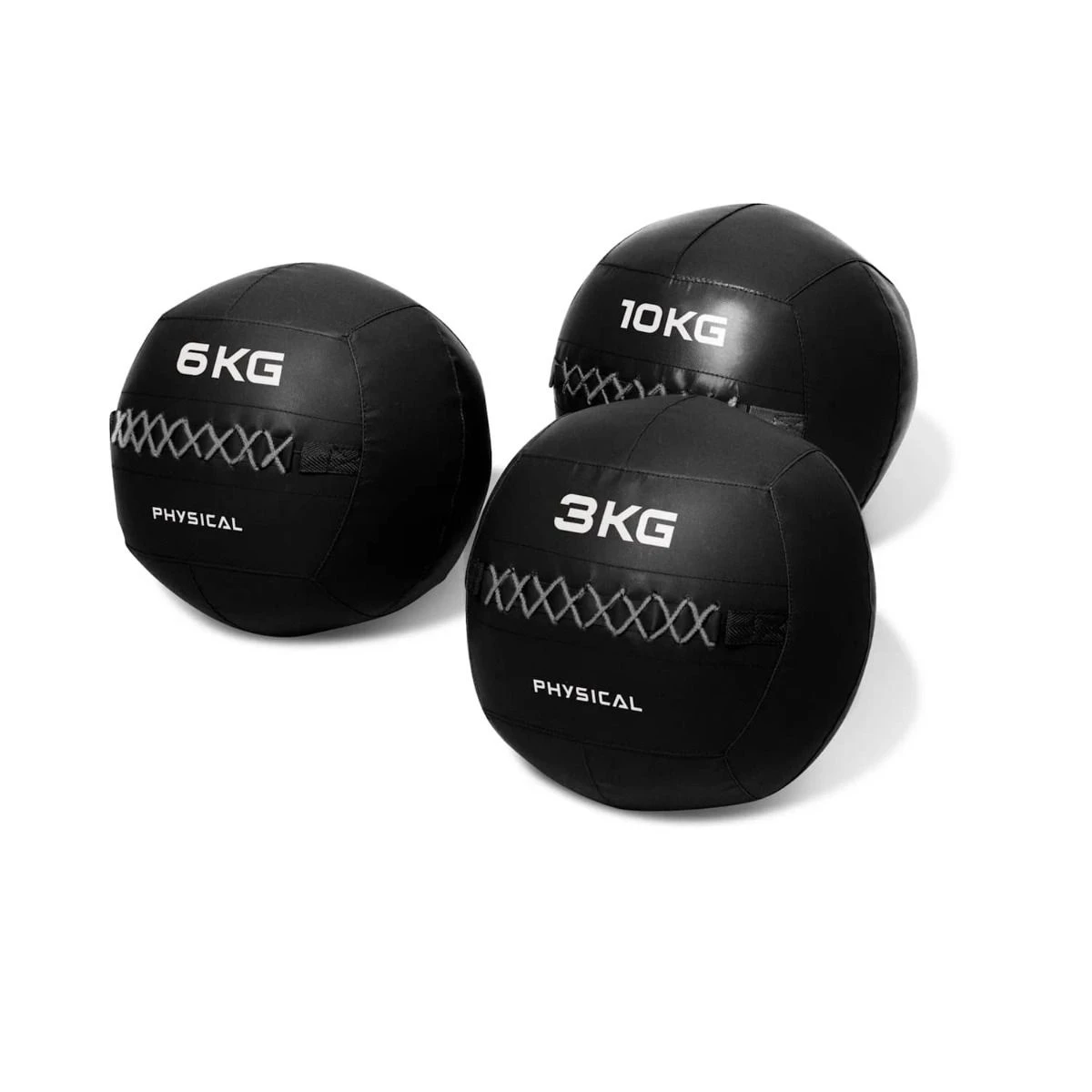 The Physical Wall Balls have a vinyl cover that is not only tough, but feels soft. With a little give and the fixed 350mm diameter regardless of weight, the design ensures they maintain that diameter which helps with the biomechanics of ‘throwing’ as well as being easy to catch and throw. We have 10 sizes in all that are available.