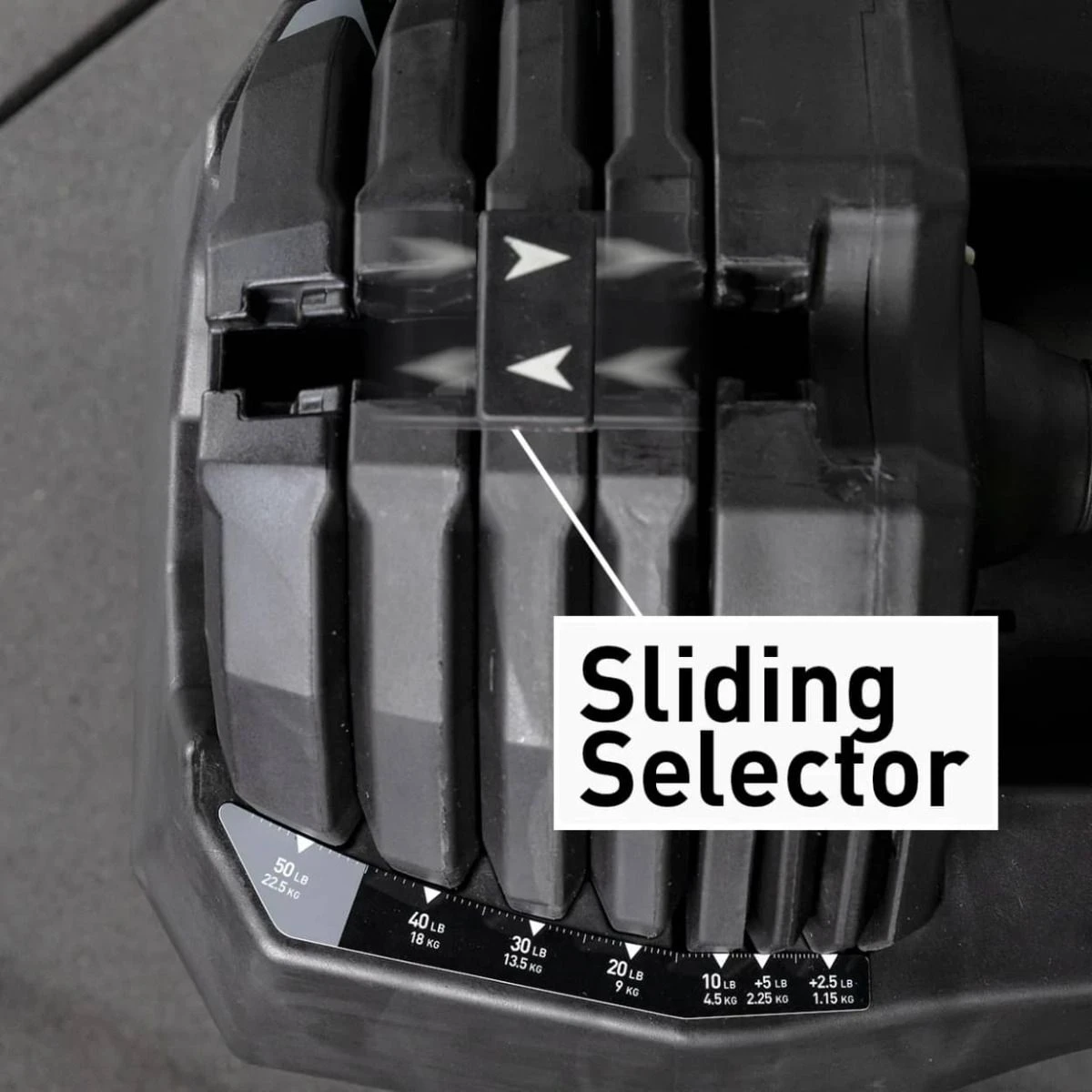 You’re buying a single adjustable dumbbell that offers up to 25kg in weight for you to workout. You can adjust the weight from 4.5kg through to 25kg and you also get a micro adjustment option that adds between 0kg and 2.2kg. It comes with a moulded storage tray for the unused weights – all marked up with the weight increments.