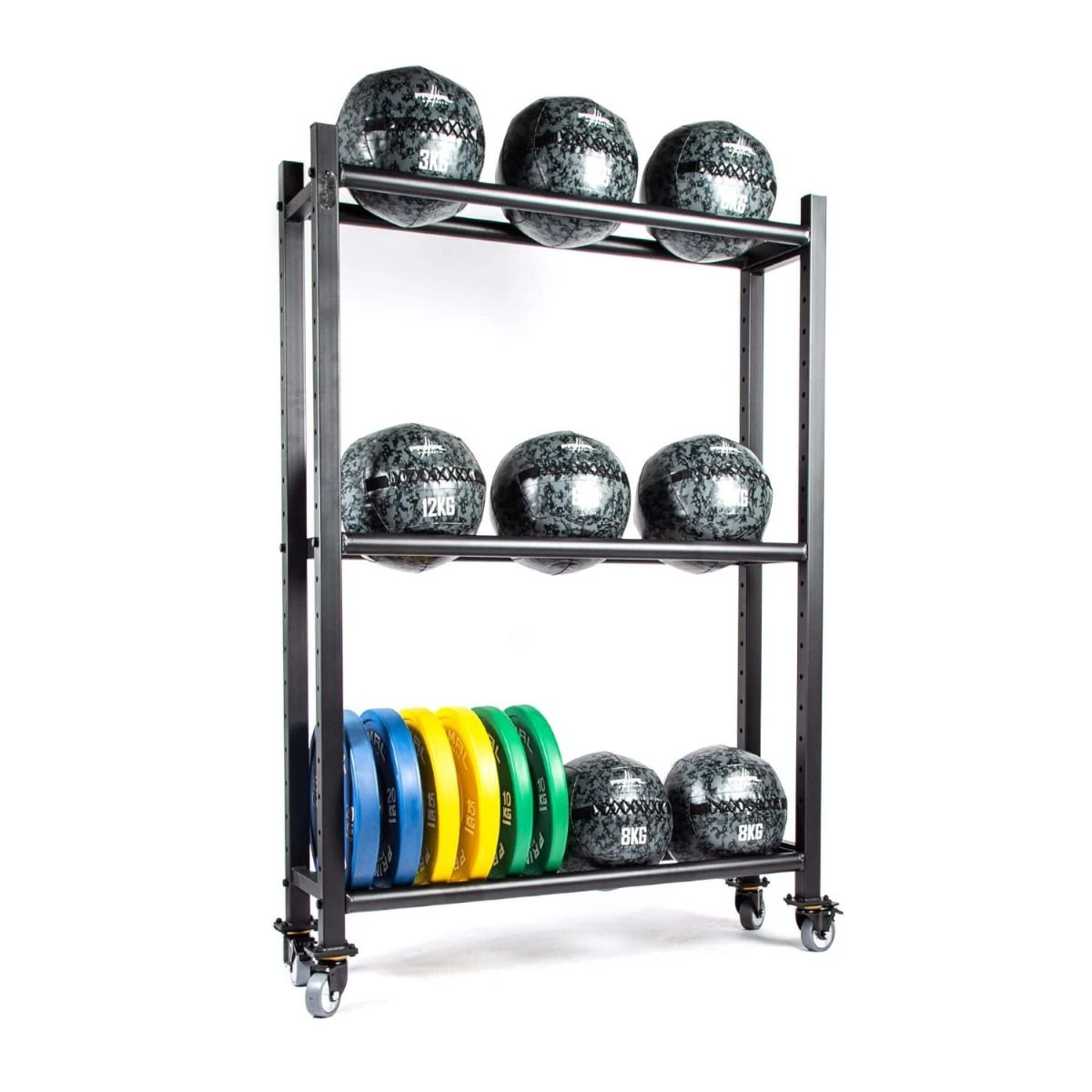 Having the ability to move the storage this is a flexible and versatile free standing storage rack. With the ability to store Olympic discs as well as other functional accessories, the strong steel frameis half the depth of normal storage shelf units, whilst also have the wheels for portability. Great also for homes, it’s a good investment to keep your gym area free from clutter.