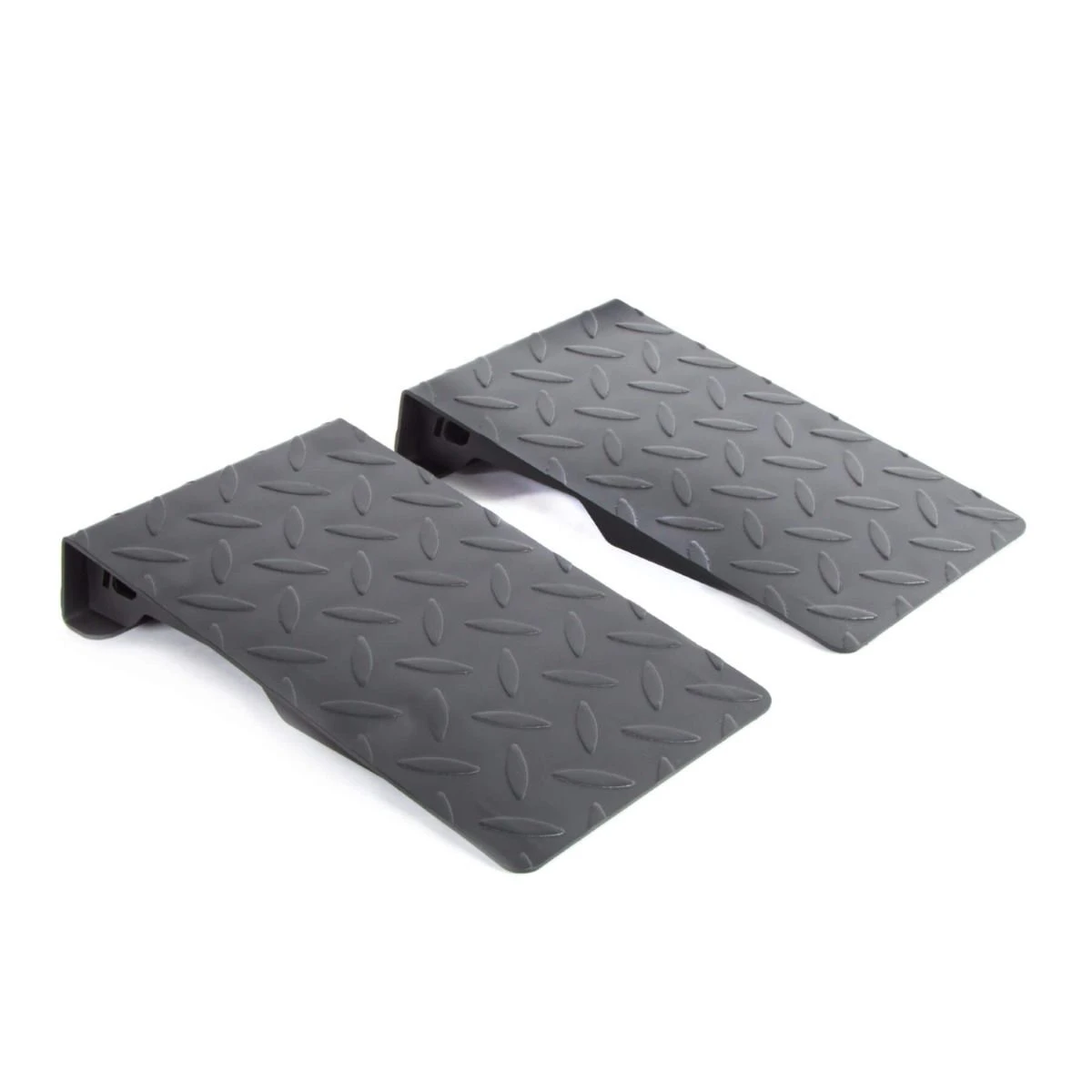 The steel ramps have a non-slip grid design and are finished in matte black powder coating. The ramps come in either 10, 20 or 30 degree angles and are easily identified by their laser cut numbers.