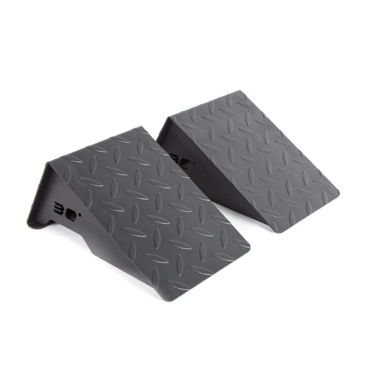 The Primal Strength Squat Ramps are individual, fully welded squat ramps. The ramps increase your range of motion to improve your squat. The steel ramps have a non-slip grid design and are finished in matte black powder coating.