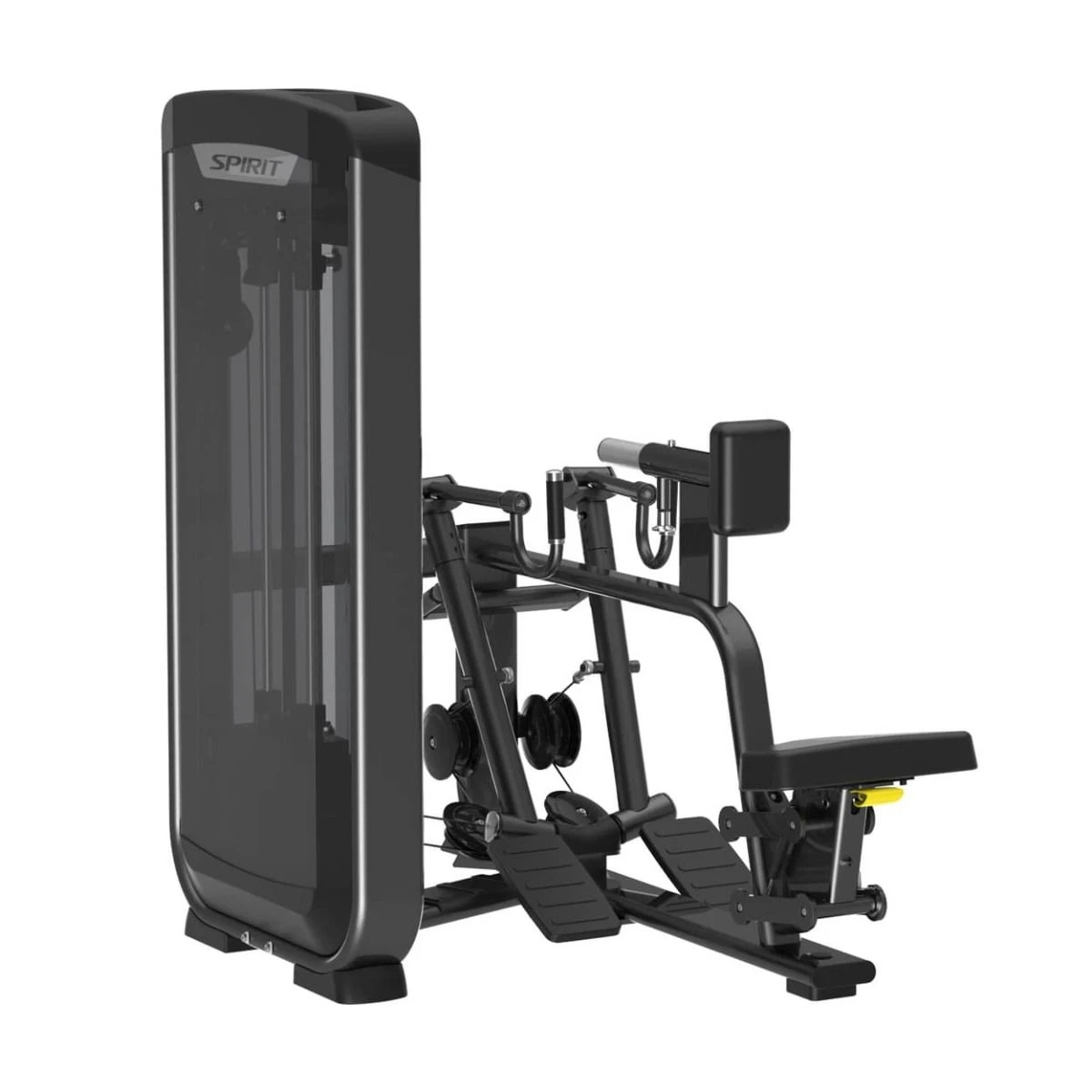 Ensuring that you strenghten both your upper arms as well as your back is helped by the pivoting grips offered on the Spirit 35 Pin Seated Row. As well as the unilateral and bilateral motions possible, all the seat and back pad adjustments are easy and simple to make so you can be comfortable when performing your exercise.