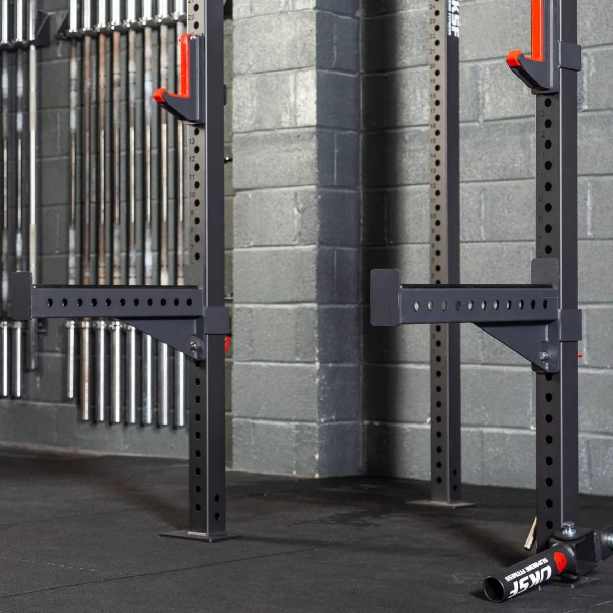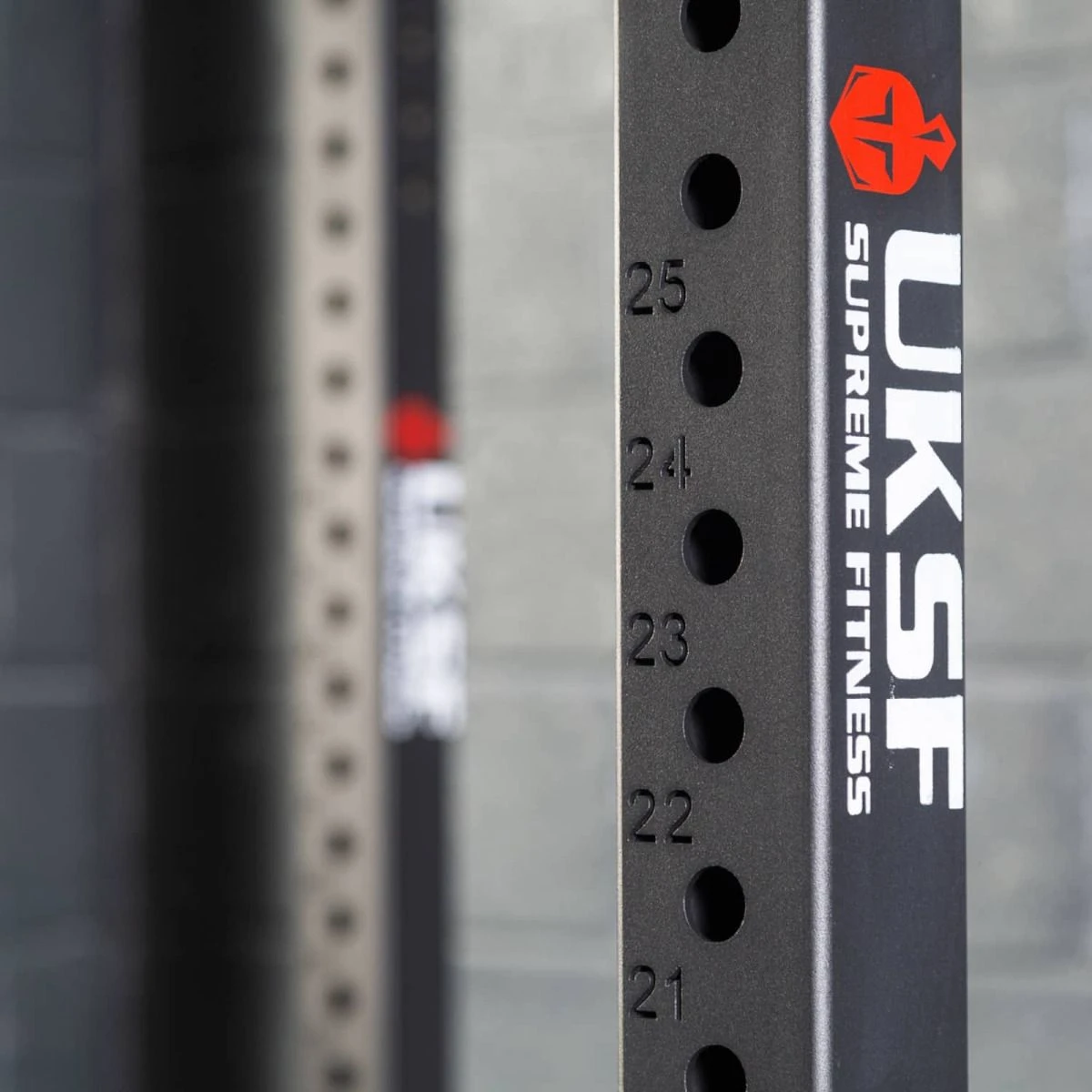 Unlike some other manufacturers, UK Supreme Fitness provide the rack with the following for no extra cost: Spotting Safety Arms; J hooks; Pull Up Bar; Wall ball storage; Kettlebell storage; Dumbbell storage and of course the 100kg lat/seated row machine.
