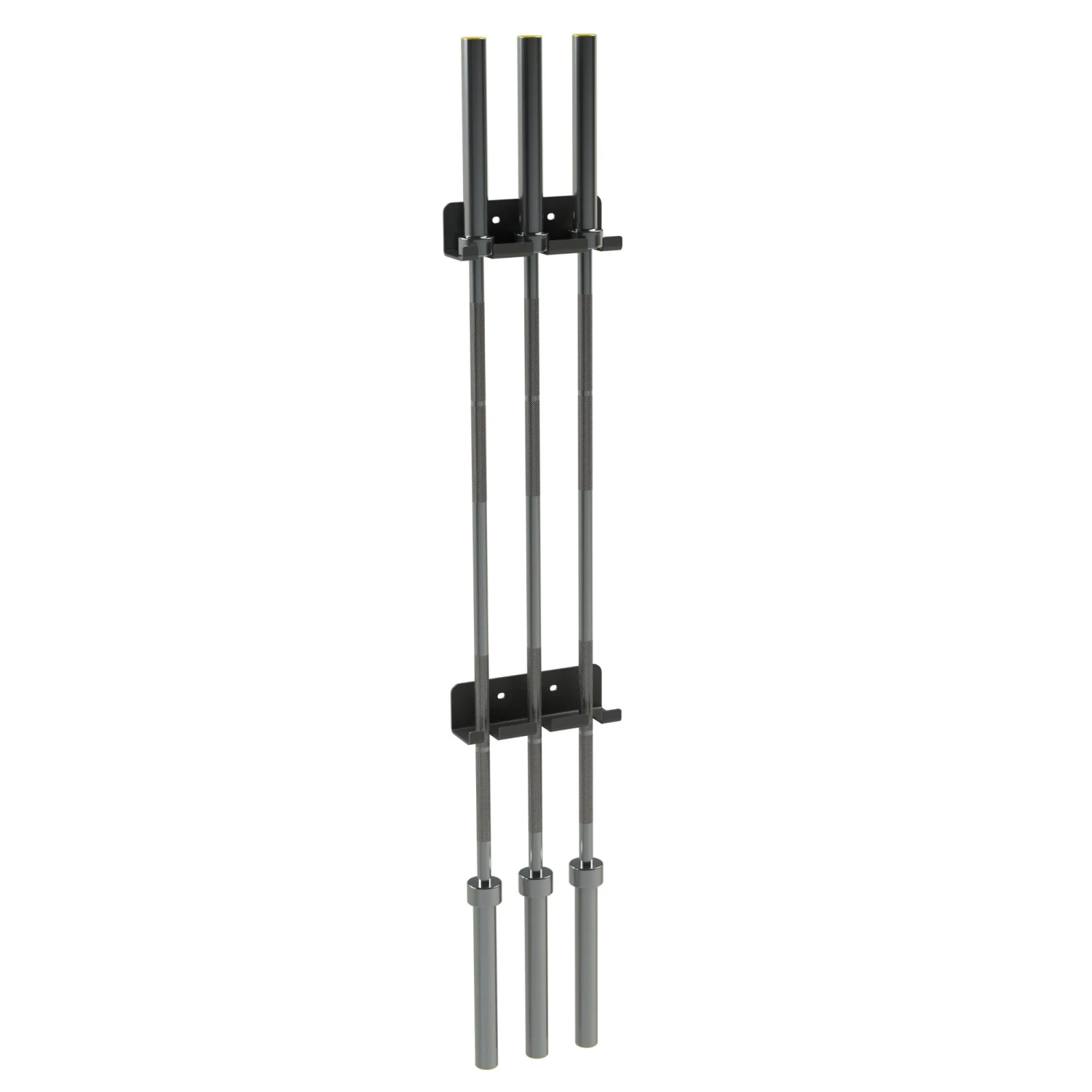 Storing your Olympic bars vertically ensures they are easy to spot, easy to remove and helps keep your gym floor clear. The top and bottom sections simply need to be fixed to a solid wall and you are free to have them as far apart as you wish depending on your bar lengths. *Please note, Olympic bars not included.*